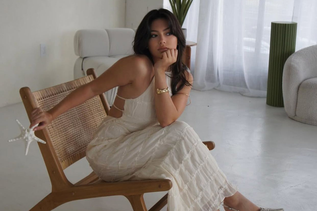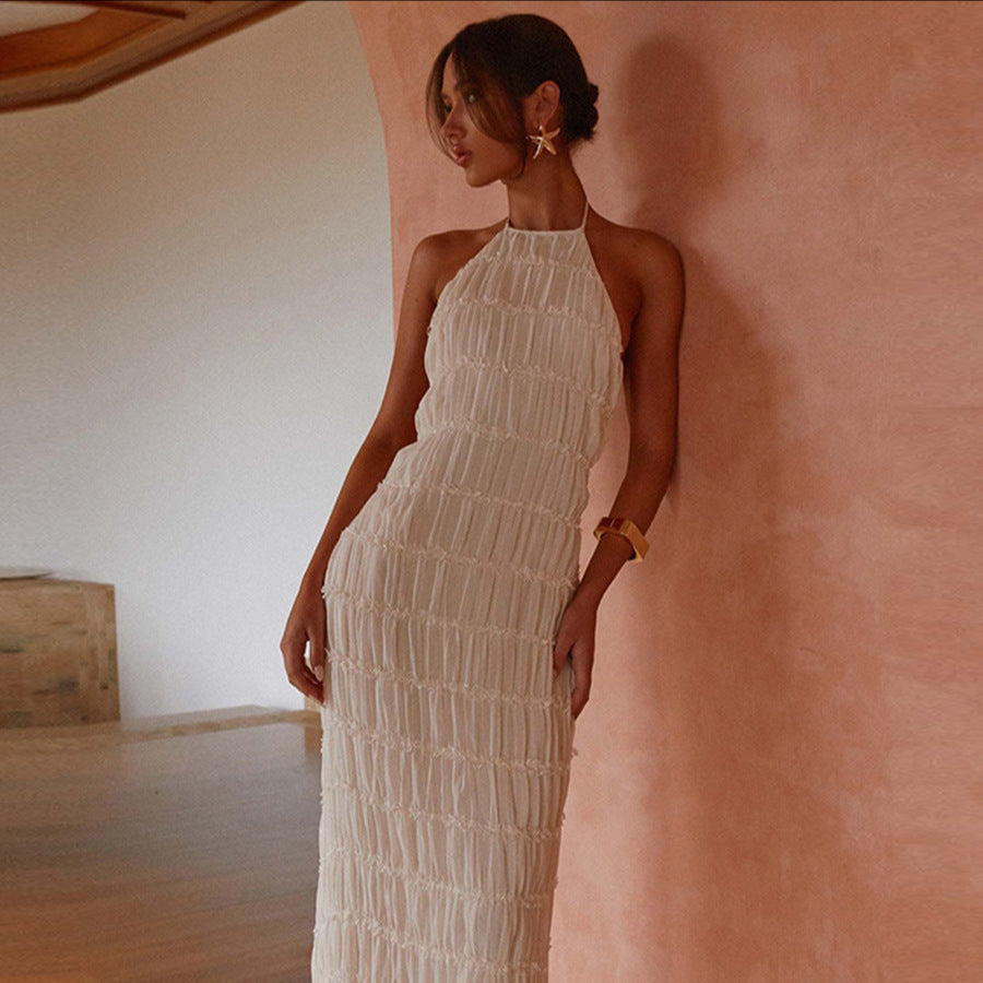 💃 Serene combines the comfort of knitwear with timeless elegance. The halter neckline beautifully accentuates the shoulders, while its long silhouette creates a sophisticated and graceful look. 🌸 Designed for spring and summer, this piece transitions effortlessly from day to night. Pair it with sandals for a relaxed beach stroll or with heels for an elegant evening event.