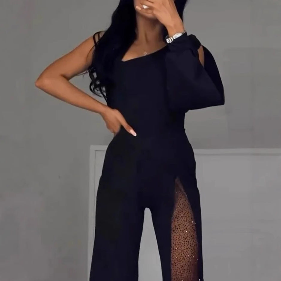 Sofistike cazibenin vücut bulmuş hali olan bu özel tasarım siyah tulum, zarif silüeti ve tek bacağı boyunca uzanan göz alıcı kristal file paneliyle tüm ilgiyi üzerine çekiyor. Modern çizgileri lüks detaylarla birleştirerek hem güçlü hem de feminen bir görünüm yaratıyor. 👗 Stil İpuçları ✓ Akşam şıklığı: Şık stilettolar ve kristal işlemeli bir çantayla kombinleyin. ✓ Işıltıyı artırın: Minimalist pırlanta küpeler veya zarif bir bileklik ekleyin. ✓ Güçlü bir ifade: Deri bir blazer ve yüksek topuklu botlarla tamamlayın.