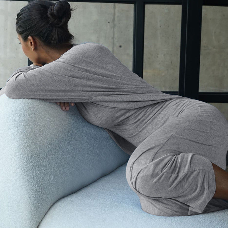 ✨ Zamansız zarafet ve modern konforun buluşma noktası. Élora, günlük rahatlığı lüks bir dokunuşla harmanlayan iki parçalı tasarımıyla öne çıkıyor. Yumuşak dokulu kumaşı ve bol kesimi, hem şehirde hem de seyahatlerinizde eşsiz bir sofistikelik sunuyor. Uzun ceket ve bol pantolon kombinasyonu, minimalist stili modern bir dokunuşla yeniden yorumluyor. 💫 Gri tonunun sofistike görünümü, her ruh haline zahmetsizce uyum sağlıyor; gündüz konforu için spor ayakkabılarla, akşam şıklığı için topuklu ayakkabılarla kombinleyebilirsiniz.