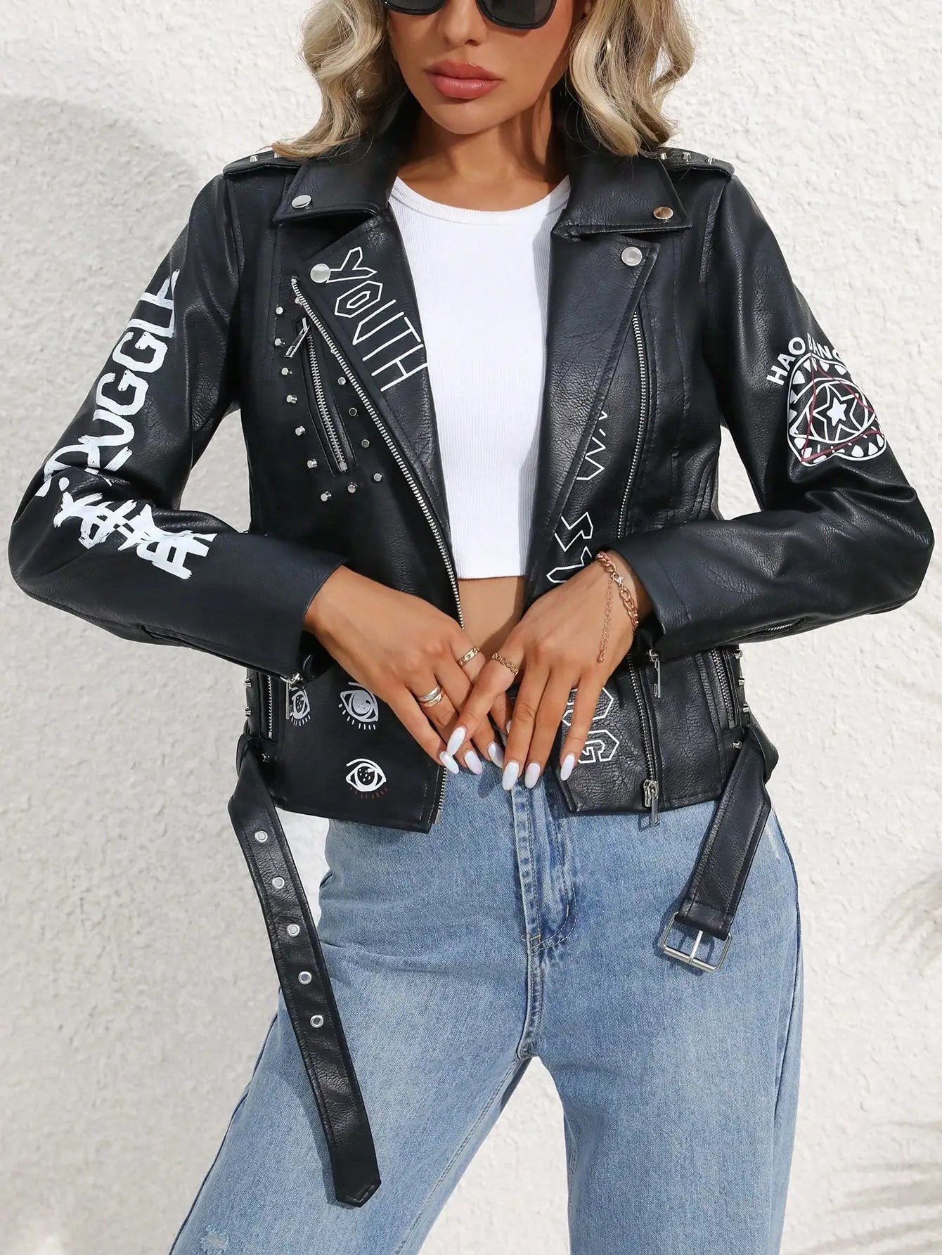 Cesaretin zarafetle buluştuğu yer – Harper Dare You Leather Jacket. Bu özel tasarım, asi ruhu lüks detaylarla harmanlanıyor. Parlak siyah suni deri dokusu, sırt kısmıki etkileyici “DARE YOU” baskısı ve zarif gotik çizgilerle işlenmiş, ona göre farklılığını hissettirir. Şehirdeki ışıkların altında bu ceket, güçlü parlamanın ve görünen enerjinin sembolü